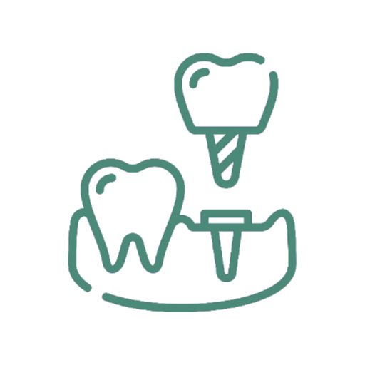 Inserción de una pieza de metal que reemplaza la raíz de un diente extraído o que va a extraerse.